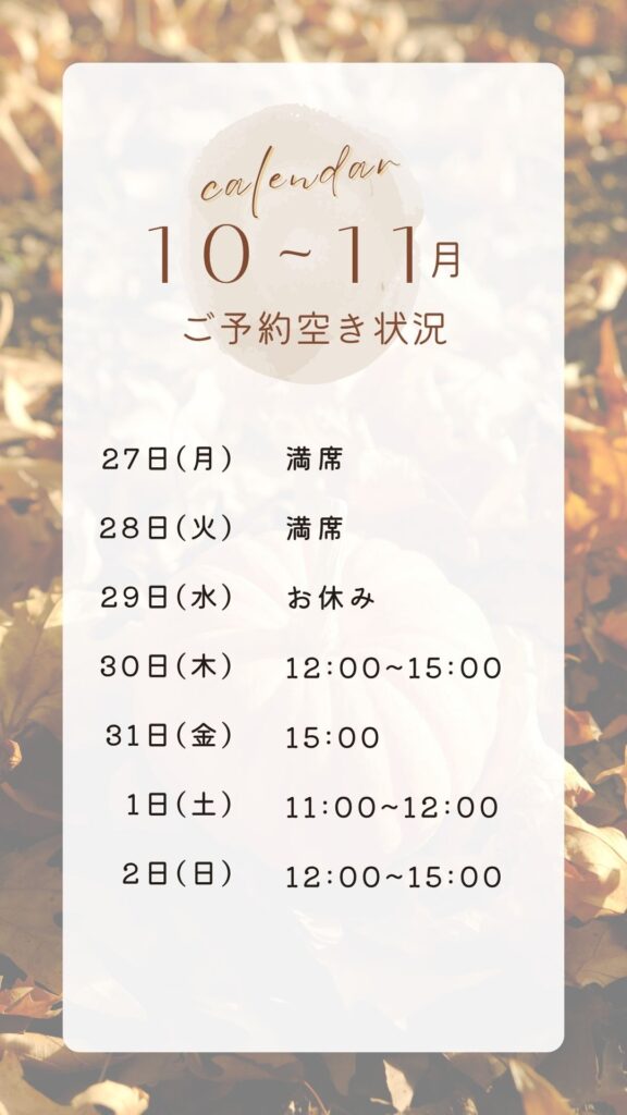 今週の予約状況のお知らせ!