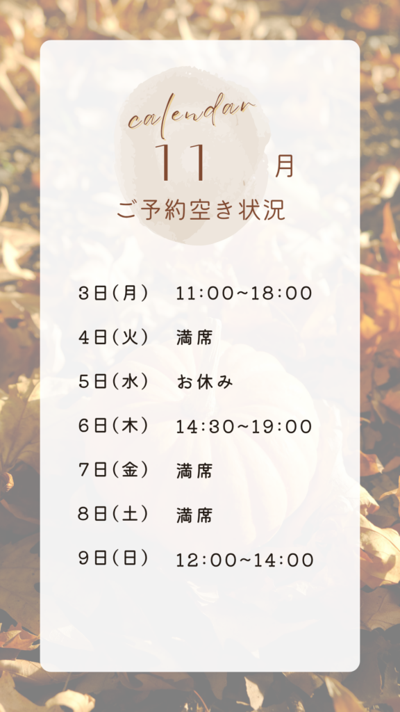 今週の予約状況のお知らせ!