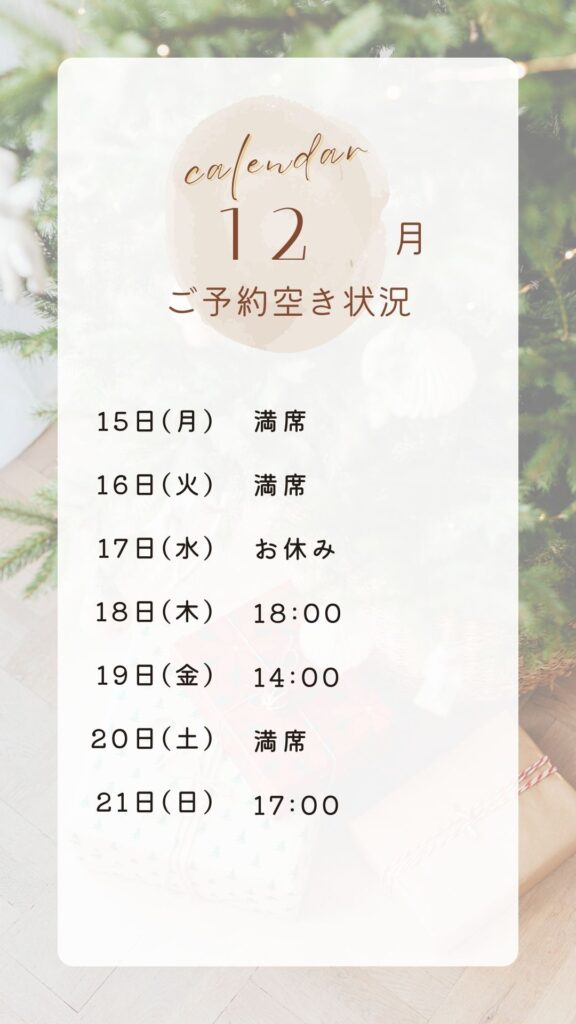 日時変更により空きが出ることがあります。