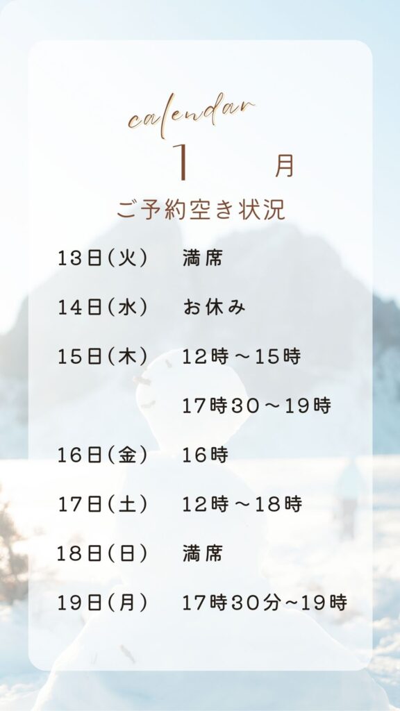 今週の予約状況のお知らせ!