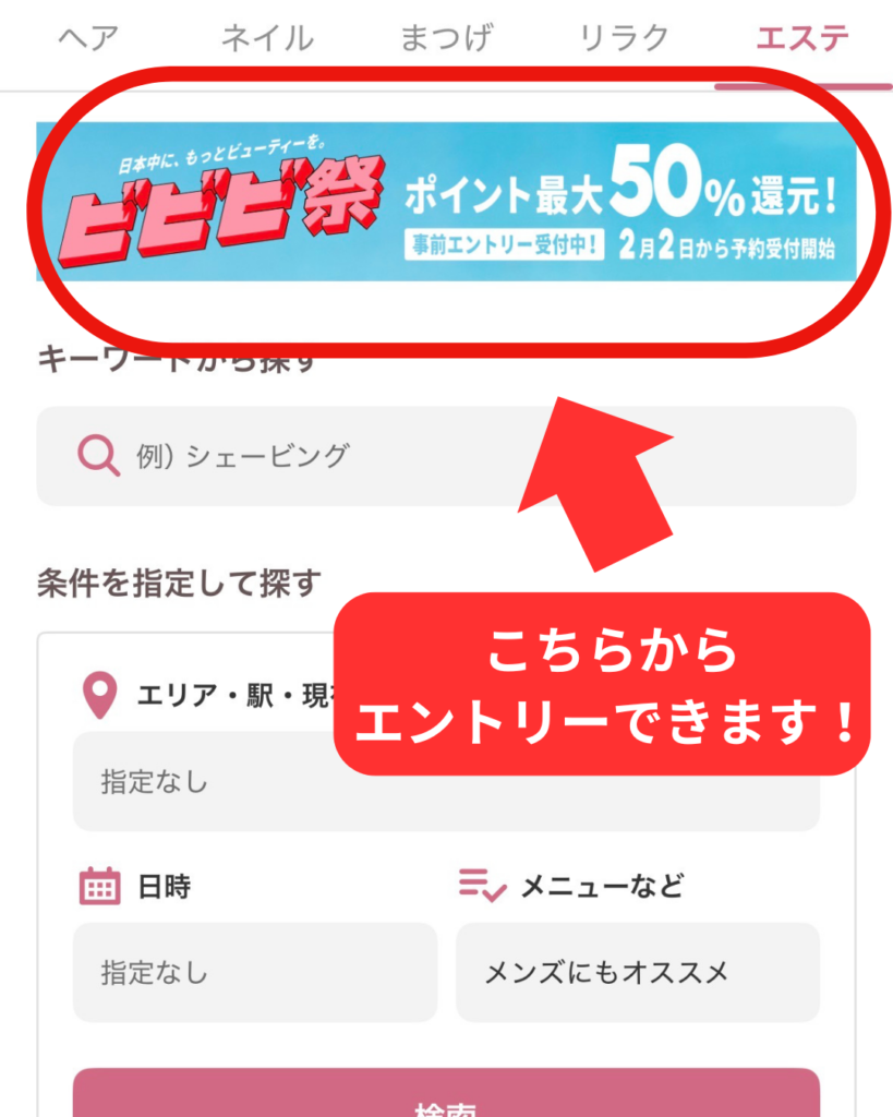 バナーを押してエントリーボタンを